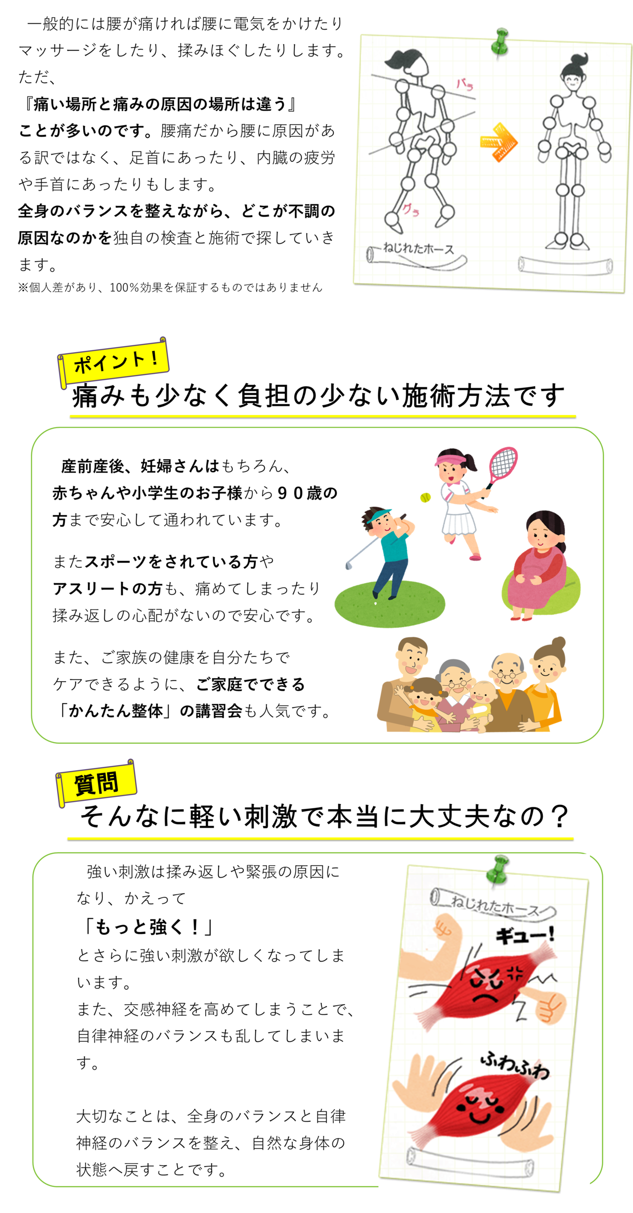 全身のバランスが整うので、慢性的な症状の方にお勧めです。