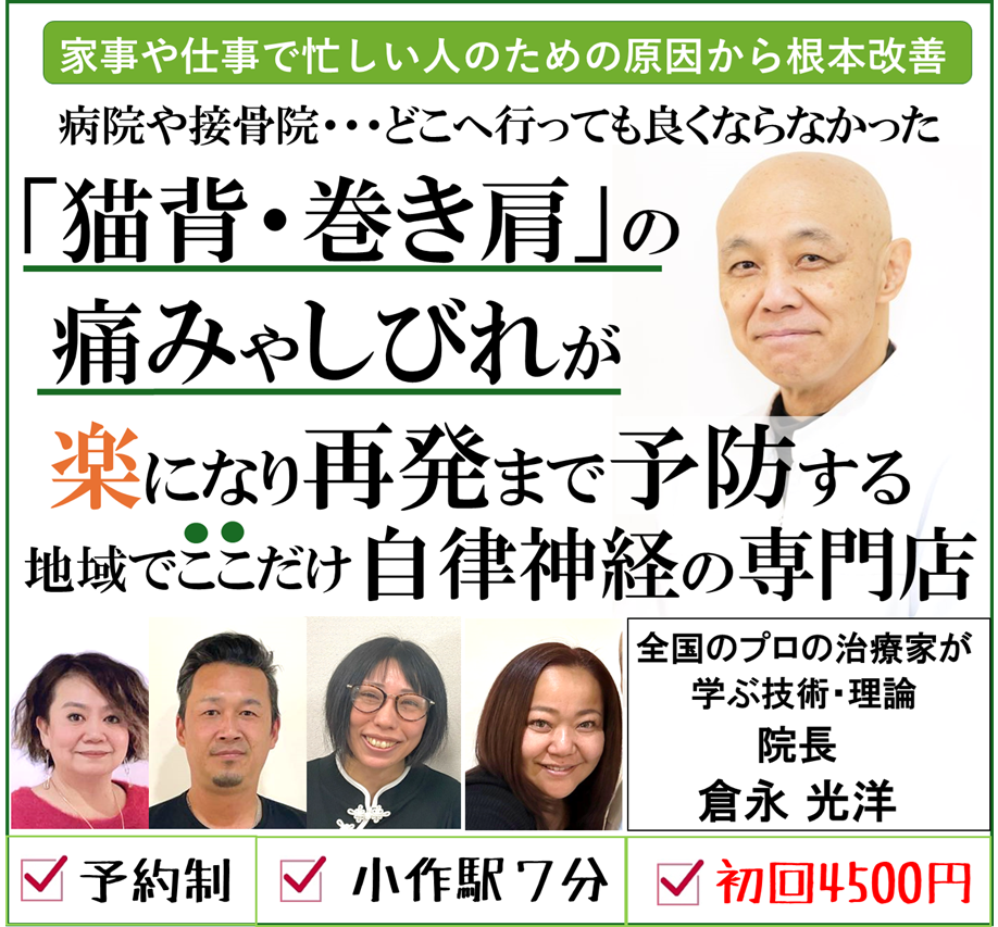 当院の、全身を整え自律神経にアプローチする整体で、あなたの猫背・巻き肩を改善し、