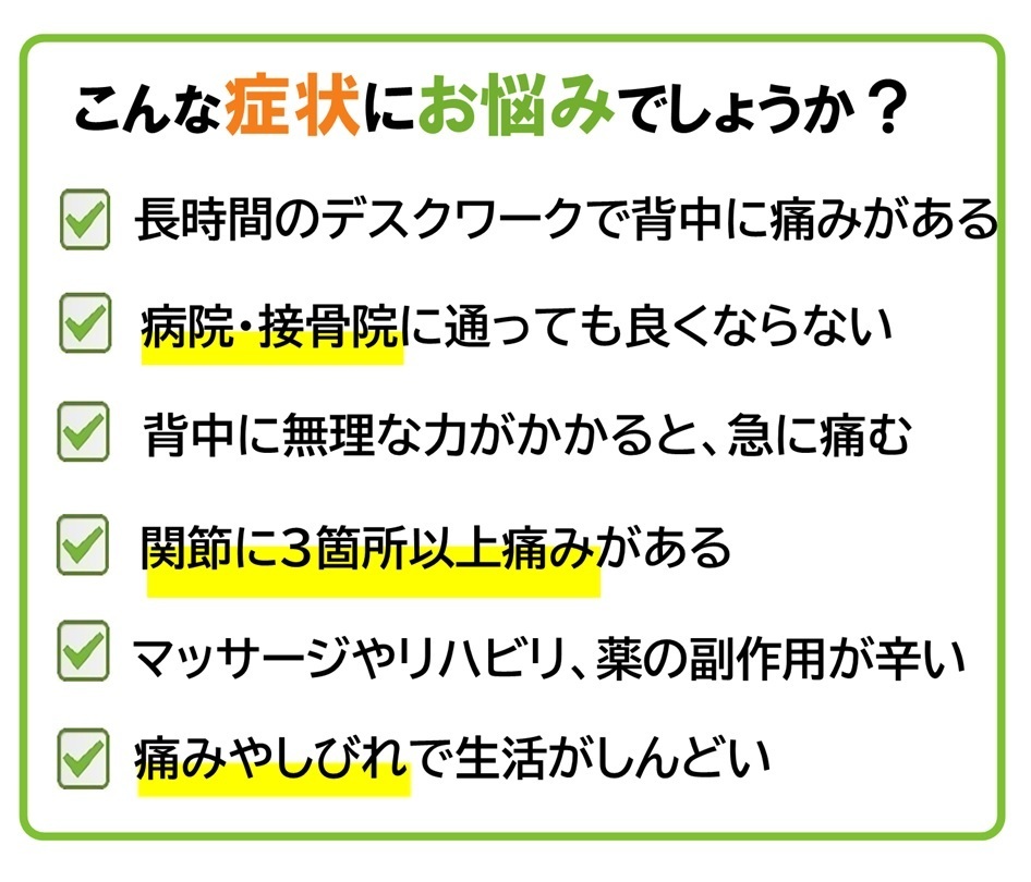 病院へ行っても、薬を飲んでも、痛みや不調が変わらない。。。